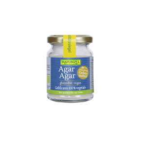 agar agar iz ekološkog uzgoja. Kodni broj i podrijetlo sirovine: otisnuto kod eko znaka. Stavlja na tržište RH: Biovega d.o.o., Majstorska 1E, 10 000 Zagreb, Hrvatska. Uputa za uporabu: koristi se za zgušnjavanje jela. Razmutiti u hladnoj vodi i dodati jelu te kuhati uz stalno miješanje cca 5 minuta. 2 g = 1 žličica (za 0,5 L tekućine ili 0,5 kg voća), 4 - 6 g (za 0,5 kg paštete ili pudinga). Najbolje upotrijebiti do: otisnuto na poklopcu. Ostale prosječne hranjive vrijednosti na 100 g proizvoda: vlakna 79,0 g